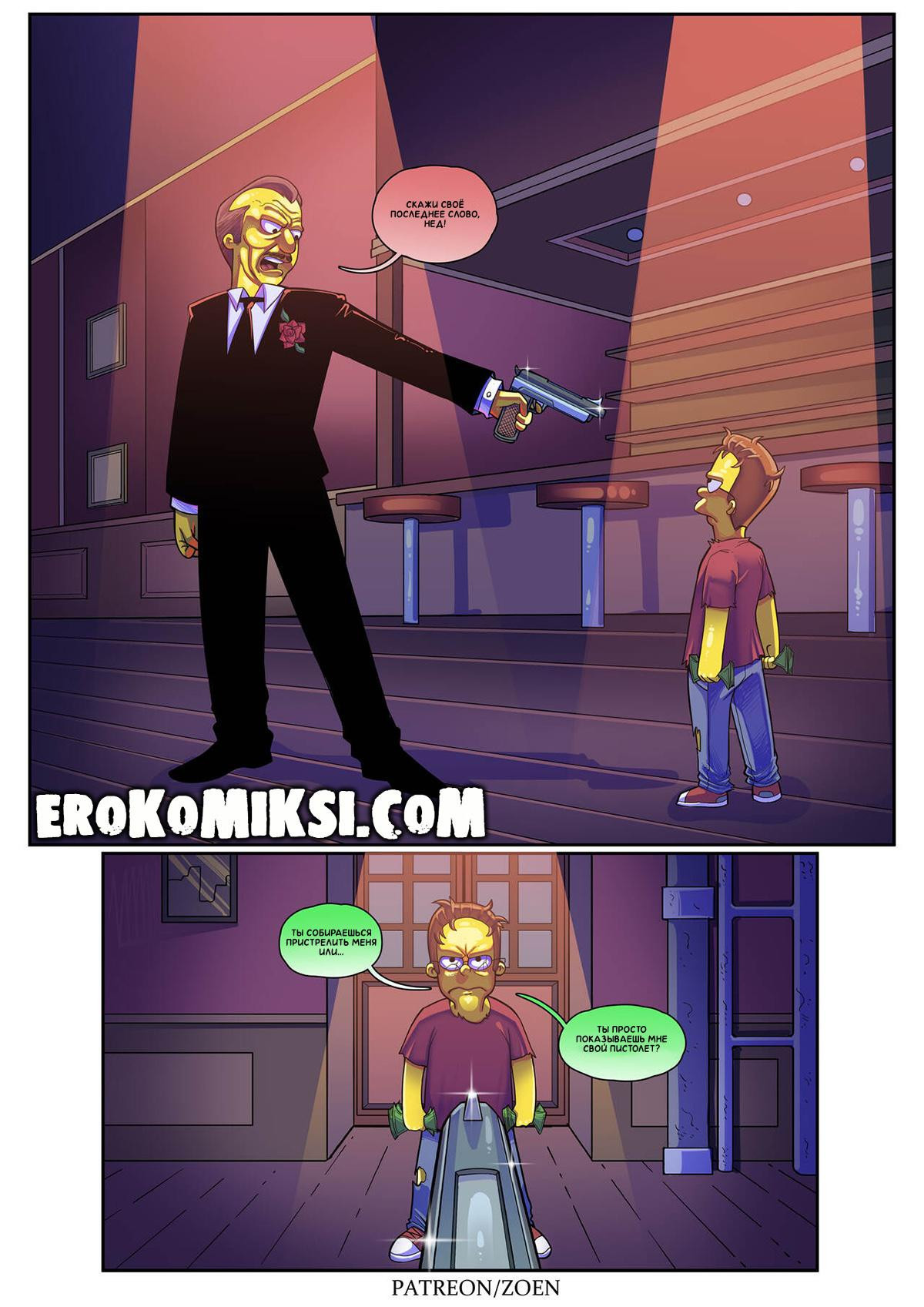 Порно комикс Симпсоны. Плохой Парень. Нед Фландерс не всегда был набожным христианином, любящим мужем и заботливым отцом. Он родился в неблагоприятном районе, был не очень послушным ребёнком и постоянно ссорился с родителями. Однажды, не выдержав, Нед сбежал из дома и стал жить на улице, точнее выживать…Он воровал еду и вещи, чтобы выжить, но однажды, он украл не у тех людей…